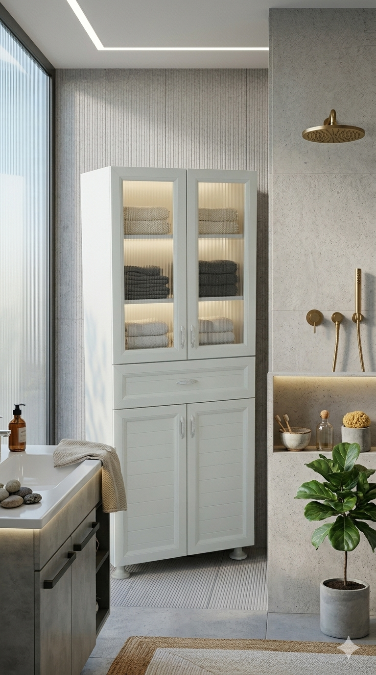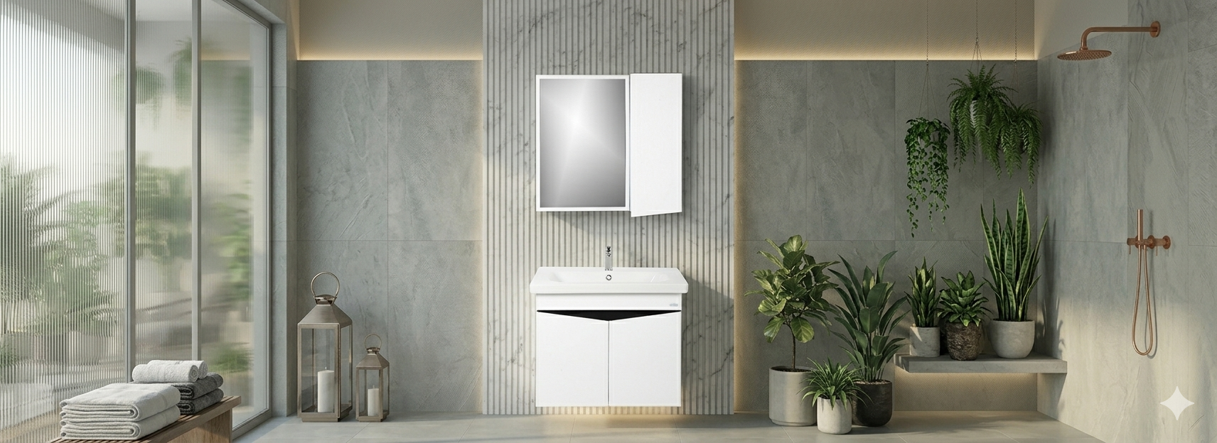Geniş depolama alanları ve LED aynalı setleri ile PVC banyo dolaplarımız, düzeni estetikle buluşturuyor.